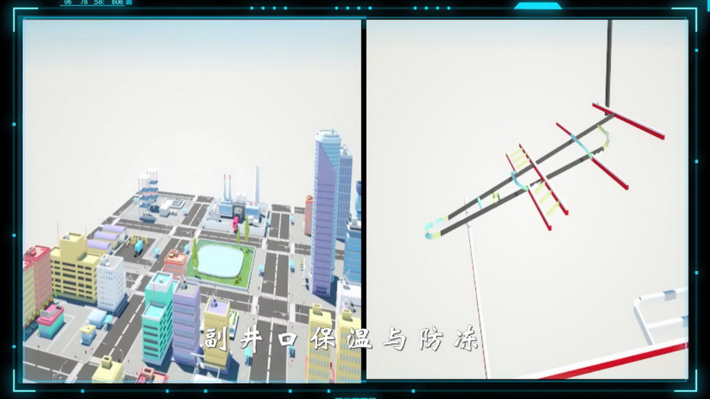 本系统主要包括矿井排风风塔二相流体高效逆流混合换热系统技术,空压机高效油-水换热系统技术,并利用Cinema 4D软件对其工作场景进行仿真模拟和系统的工作过程的演示。矿井